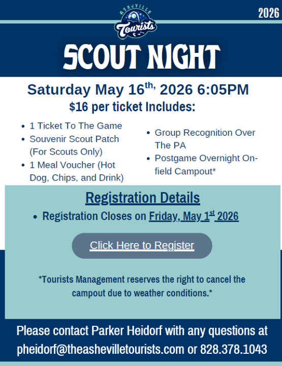 Enjoy an evening of Baseball, Scout Spirit, and FUN with the Asheville Tourists!